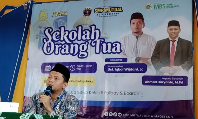 Kota Magelang – SMP Muhammadiyah 1 Alternatif (Mutual) Kota Magelang kembali menghadirkan program Sekolah Orang Tua yang kali ini diikuti oleh seluruh wali murid kelas IX. Kegiatan yang menjadi agenda perdana pada tahun ajaran 2025/2026 semester gasal tersebut digelar di Aula SMP Mutual pada Sabtu (20/09) dengan menghadirkan pembicara Ustaz Iqbal Wijdani, Lc. Dalam sambutannya, Kepala SMP Mutual Kota Magelang,…